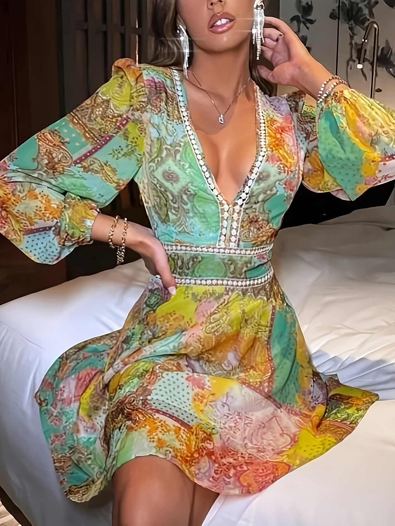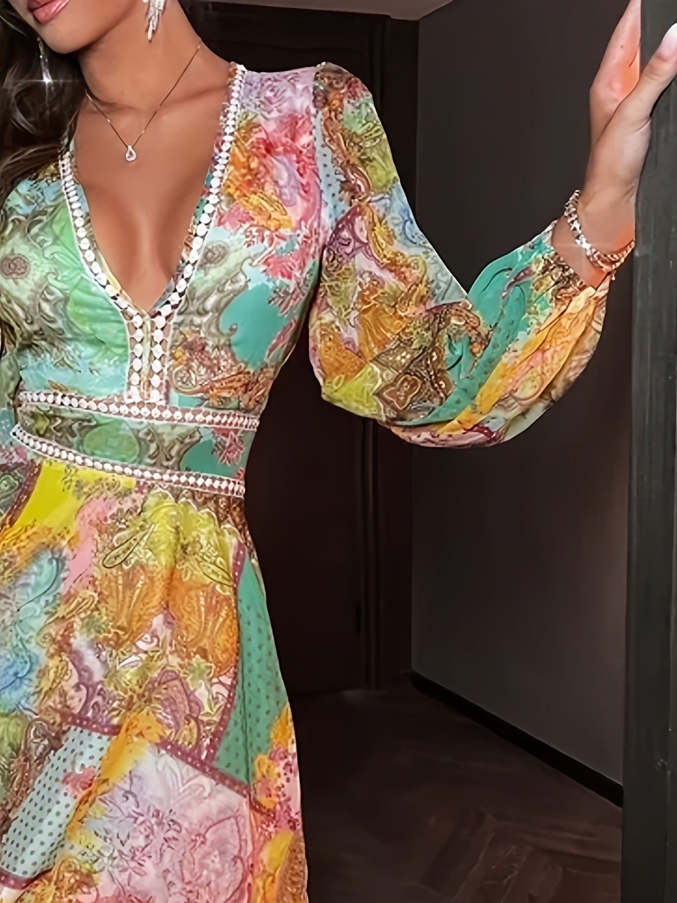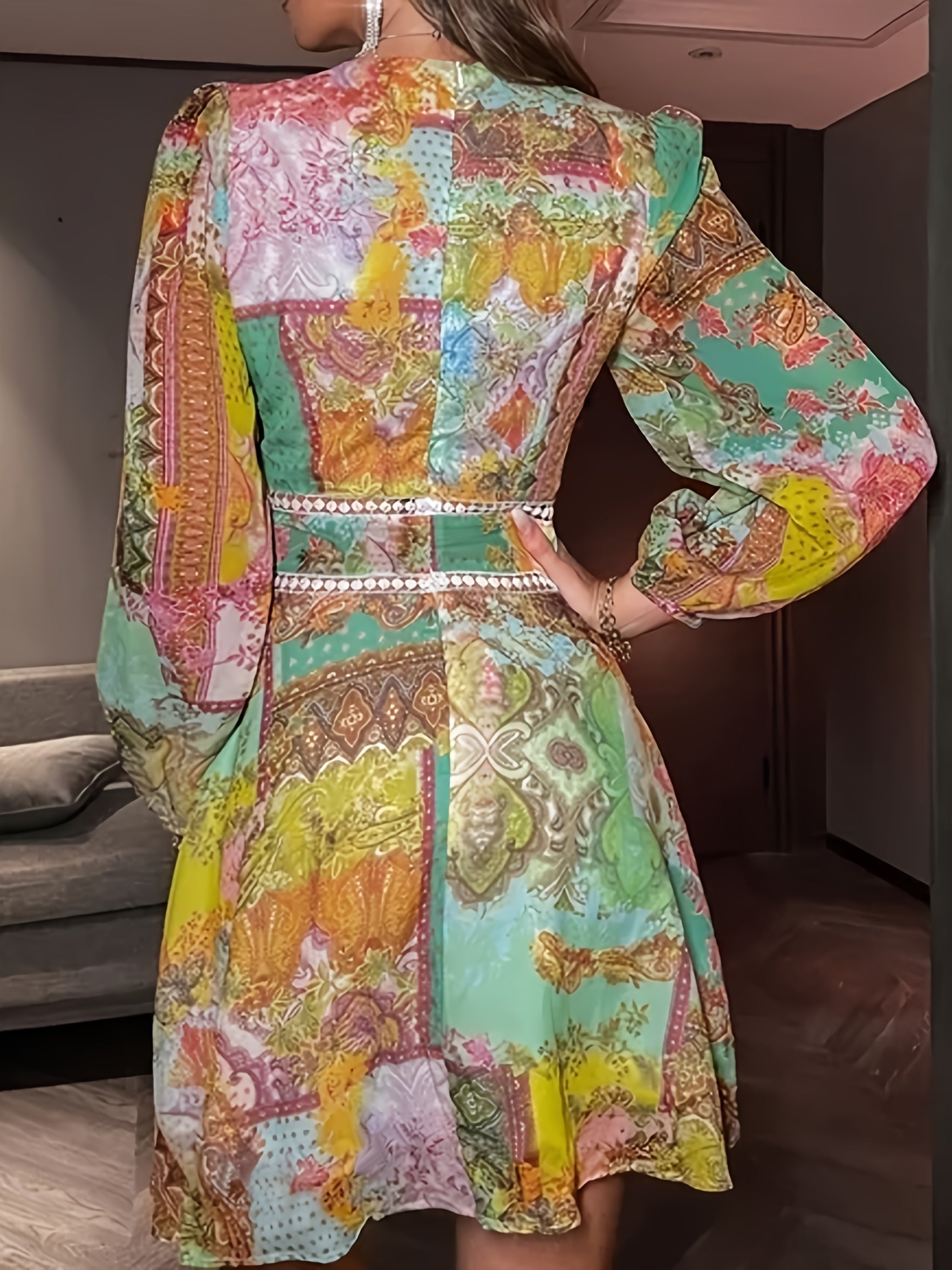 Elegantes Rotes Midikleid mit geometrischem Muster und Gürtel