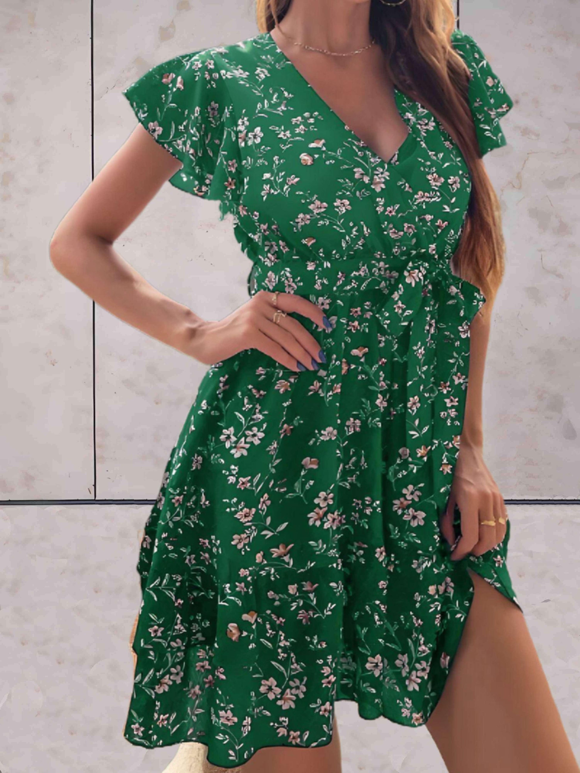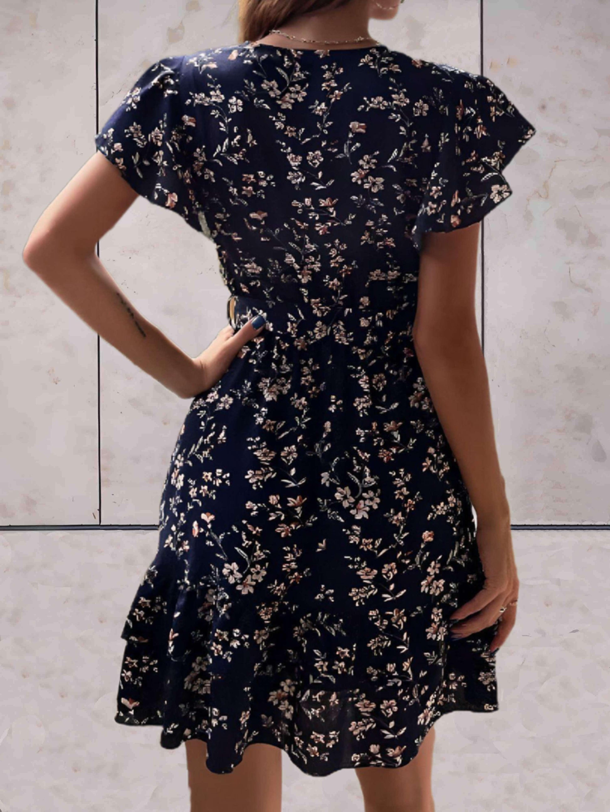 Larissa's Zauber: Elegantes Kurzarm-Minikleid mit Taillenbindung