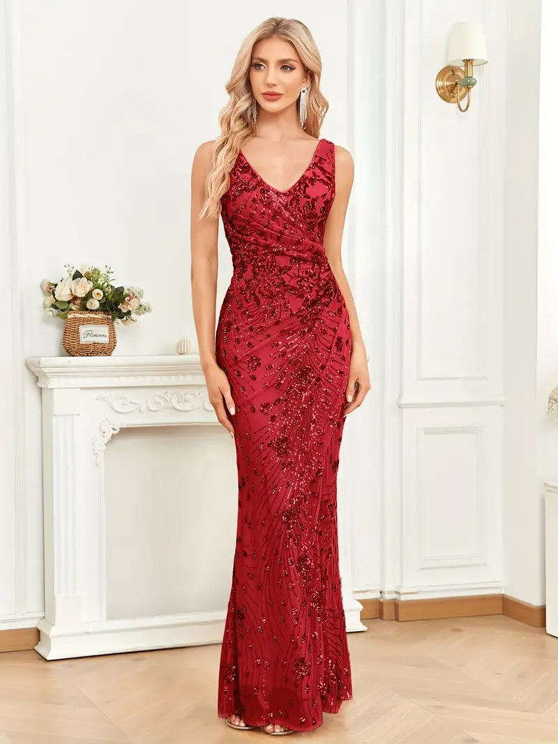 Peppen Sie Ihr Brautjungfern-Ensemble mit unserem Pailletten-Dekor-Rüschen-Tankkleid auf. Mit seinem eleganten Schößchenausschnitt und dem geschmackvollen Schlitz strahlt dieses Kleid Raffinesse und Charme aus. Die schmeichelhafte Silhouette und die aufwendige Paillettenverzierung machen es zu einer zeitlosen Ergänzung der Garderobe einer jeden Frau. Kleiden Sie sich beeindruckend und schaffen Sie unvergessliche Erinnerungen in diesem atemberaubenden Kleidungsstück für Damen.